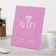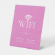 Make Wifi access easy and stylish with this White Wifi Password Pedestal Sign in pink background. Perfect for Airbnb hosts, vacation rentals, guest rooms, cafés, beauty salon, studio and offices, this minimalist Wi-Fi wall sign helps guests connect quickly.