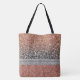 Stylish Girly Rose Gold Glitter Leopard Monogram Tote Bag