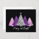 Pretty chic and elegant iridescent pink and purple faux glitter Christmas trees card. Beautiful, modern and cool modern sparkly cute magical design. Personalise it with your own message or names, perfect for the holidays and Christmas season.