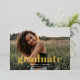 Celebrate your milestone in luxe style with this Stylish Overlay Bold Gold Typography Photos Graduation Foil Invitation. Featuring striking gold foil “graduate” typography layered over a full-photo front, this design creates a glamorous and modern statement. The clean, photo-focused layout continues on the back with space for additional images and event details, giving it a polished and cohesive look. Perfect for seniors who want a bold, fashion-forward way to announce and celebrate their achievement. Fully customizable with your photos, name, school, and party information for a truly standout keepsake.