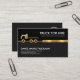 Riding this gold border at the upper right corner, is the business name and a slogan option to publicise your services. Near the base of the card lies your prestigious name and the contact details.
