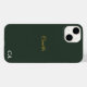 A stylish phone case in Gold & Forest Green colours with a name and monogrammed letters in white. A nice gift idea for a classy and elegant woman. Also, suitable for chic men and distinguished.