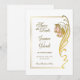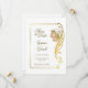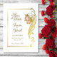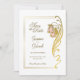 An elegant gold wedding save-the-date featuring an ornate gold frame with a gold embellishment with blush pink flowers as part of the frame. Text is easily customised for you to add your own details as required.