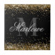 Stylish Gold Glitter Black White Monogram Ceramic Tile
