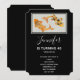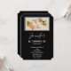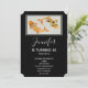 A birthday invitation with an illustration of a pair of gold koi fish swimming together. Black background.