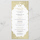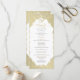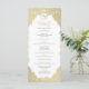 This modern wedding program features a luxurious gold frame design with elegant damask flourishes, creating a refined and stylish look. The front beautifully presents all ceremony details in a clear layout, while the back highlights the couple’s names inside a decorative frame. The rich gold tones bring a sense of sophistication and timeless beauty, making this program card ideal for formal weddings and treasured keepsakes.