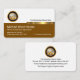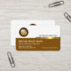 A white and brown cover is accentuated by a faux gold tab near the card's center. Riding on this gold tab of success is your business name with a creative gold "home roof-electric saw" logo you can use in the opposite direction. Below the logo lies your prestigious name, job title and the contact details with a slogan caption in the opposite direction.