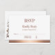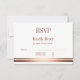 An elegant rose gold/copper bordered at the bottom, simple wedding rsvp response card featuring a rose gold foliage embellishment on the back.