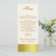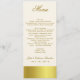 Elegant skinny wedding reception table menu, done in ivory, with graphics of gold tone band along the bottom, and covering the back. Custom text done in a golden brown is ready to personalise for your wedding reception. Lovely addition to our Stylish Gold Tone Wedding set.