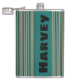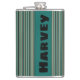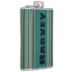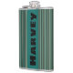 Small, convenient, easy carry travel flask, in style with this turquoise stripe travel flask, personalise text to your own name or fro a custom gift idea. The teal background and wide accent stripe can be changed to any colour.