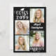 Announce your graduate's achievement with this modern photo collage graduation announcement featuring 5 pictures (4 on the front and 1 on the back) and stylish CLASS OF YEAR and GRADUATE typography and script typography for your graduate's name. CHANGES: All text font styles, colours, size and placement as well as the graduation cap graphic and background colours can be changed to school colours or coordinating colours to your images (shown in white on black). The back side has an optional custom text field to include additional information about the graduate (delete the sample text in that field if not desired). ASSISTANCE: For help with design modification or personalisation, colour change, resizing or transferring the design to another product, contact the designer BEFORE ORDERING via the Zazzle Chat MESSAGE tab below or email makeitaboutyoustore@gmail.com.