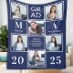 Stylish Graduation 6 Photo Navy Blue Graduation Fleece Blanket