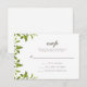 These elegant wedding RSVP cards feature a delicate green botanical leaves design against a soft white background.
