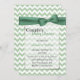 Stylish couple's baby shower invitation done in a light green and white chevron zigzag pattern. Graphics of a silver tone edged semi transparent white text area, in the middle, has a pretty muted green ribbon and bow, at the top. The backside is done in the same chevron pattern, with another text area, at the bottom. Personalise all the text, front and back to suit your event needs.