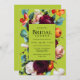 Beautifully stylish and so colourful, this bridal shower invitation has a bright and bold green background with mixed florals that include burgunday and blush roses with other mixed ranunculas and eucalyptus leaves. The look is stylish and fresh. Personalise the text template with your event details. The back of this invitation is blank, so if you need additional space for instructions to your guests, you can add text to the back.