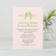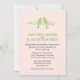 Stylish wedding invitation done in a very pale pink background, with graphics of a green and pink floral garland with two green love birds, at the top. Personalise all the text for your special day. Matching products available.