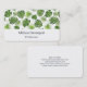 Business cards with a pretty pattern made up of green tropical leaves. Exotic and stylish design.
