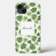 A phone case with a pretty pattern made up of green tropical leaves. Exotic and stylish design.