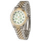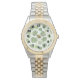 A watch with a pretty pattern made up of green tropical leaves. Exotic and stylish design.