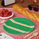 This stylish, sporty design features slim double white and golden yellow horizontal racing stripes amid wide bright kelly green stripes.