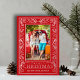 REAL FOIL! Botanical leaves and greenery surround your favorite photo with the words "MERRY CHRISTMAS" and your names in your choice of silver, gold or rose gold foil on a red background or whatever color you choose.