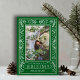 REAL FOIL! Botanical leaves and greenery surround your favorite photo with the words "MERRY CHRISTMAS" and your names in your choice of silver, gold or rose gold foil on a green background or whatever color you choose.
