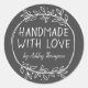 Stylish Greenery Handmade With Love Name Grey Classic Round Sticker