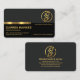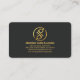 A retro grey and black column design is accentuated by a faux gold stripe near the card's centre. At the upper right corner is a gold power plug logo you can use, its business name is directly underneath. Towards the left lies your prestigious name, job title and the contact details. At the opposite end is a slogan caption for you to publicise your services.