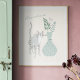 This stylish wall art features a pretty illustration of a grey cat standing next to a teal green vase filled with florals and botanicals. Personalise it with your name in handwritten script typography. Great gift for cat lovers.