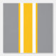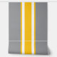 This modern design features sporty vertical white, golden yellow, and grey racing stripes.