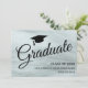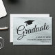 This design features elegant script typography and a graduation cap on a grey background.