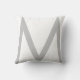 Elegant stylish grey monogram on white Throw pillow. Big M letter can be personalised.