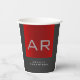 Stylish Grey Red Trendy Monogram Add Name Paper Cups