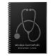 Personalised notebook with a simple grey stethescope placed on a black background. Elegant minimalist design.