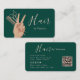 Make a lasting impression with this luxury hairstylist business card, crafted for beauty professionals who value elegance, confidence, and modern branding. Designed with a sleek green background, refined rose-gold typography, and a stylish hand illustration holding professional scissors and a comb, this card instantly communicates creativity and expertise.