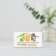 Cover features a creative green, yellow and brown rooftop with construction handyman tools in their respective coloured panels. The tools may represent some of the services that you might offer e.g. the hammer for home repairs, the brush-ladder for painting and the shovel-trowel-fork for landscaping, gardening. Below this design lies your business name in dark orange. A simple vertical line demarcates your prestigious name and job title on the left against the contact details in the opposite direction. A dark green stripe encapsulates the base.