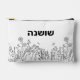 Our Stylish Floral Script Hebrew Name Cosmetic / Accessory bag in black & white has a whimsical boho, hand-drawn look. Neat & pretty! Hebrew name can be changed with your keyboard set to Input Hebrew characters. This design allows you to include a line of thoughtful (or practical) text on the reverse! This modern, minimalist floral is a favourite with all ages. Babysitters, to Bubbies :)