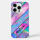 Stylish holographic chic blue pink striped Case-Mate iPhone case