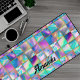 Stylish holographic trendy faux gold square geometric desk mat. To make it extra special, it is also monogrammed and personalised with name or initials or any text you like, click the "customise further" link and use the design tool to modify the design if you like.