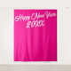 Stylish Hot Pink White Script Happy New Year Tapestry