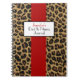 Record your daily diet and fitness, with this stylish brown and black jaguar fur pattern notebook. A bold red stripe down the middle, has a black framed white text area. Personalise the black and red text to read what ever you want. Great for so many different uses and makes a great gift idea included in a basket of goodies or by it self.