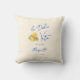Newlywed home decor throw pillow featuring elegant script calligraphy and a playful watercolor gelato ice cream design. Inspired by Italian coastal home, this stylish pillow captures the spirit of la dolce vita with bright lemon citrus details, blue typography and a relaxed Mediterranean summer aesthetic.