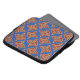 A stylish sleeve to protect your laptop with a traditional 'fleur de lys' pattern in burgundy, blue, red and gold, from a digital design by Judy Adamson.