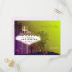 Fabulous Las Vegas sign, tall palm tree silhouettes, and greenish yellow and purple ombre background illustrated on custom Wedding RSVP Postcards. Customise the response cards with your own wording for a FESTIVE DESTINATION WEDDING | STYLISH LAS VEGAS WEDDING or CASINO THEMED WEDDING. ((You can find the matching wedding essentials & favours in this store, Bridal Heaven. Contact ujean4791@gmail.com for custom work and/or coordinating wedding stationery.))