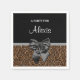 Stylish Leopard Print Elegant Black Bow and Name Napkin