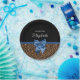 Stay in fashion with these stylish brown fur leopard print paper plates with an elegant blue ribbon tied into a chic bow. Personalise this modern and classy animal print design by adding the name of the party girl. Flat printed image, NOT actual fur or ribbon.