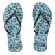 Trendy feminine flip flops featuring a stylish light blue leopard spot pattern; customisable by adding your name in white lettering on a blue label
