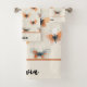 This set of personalised blush pink bath towels features a pattern of stylish boho line art butterflies.