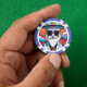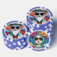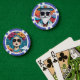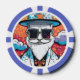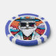 This poker chip design is made of a colourful illustration of a fashionable man with white beard, rectangle sunglasses and cylinder hat. This is a great poker chip design for people who value their style!