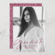 Modern graduation announcement featuring the graduate's vertical photo with "Graduate" in a stylish maroon script overlay. Personalise the front of the photo graduation announcement by adding the graduate's name, school name, and graduation year. The back of the trendy graduation announcement features a hand-drawn maroon and white pattern.